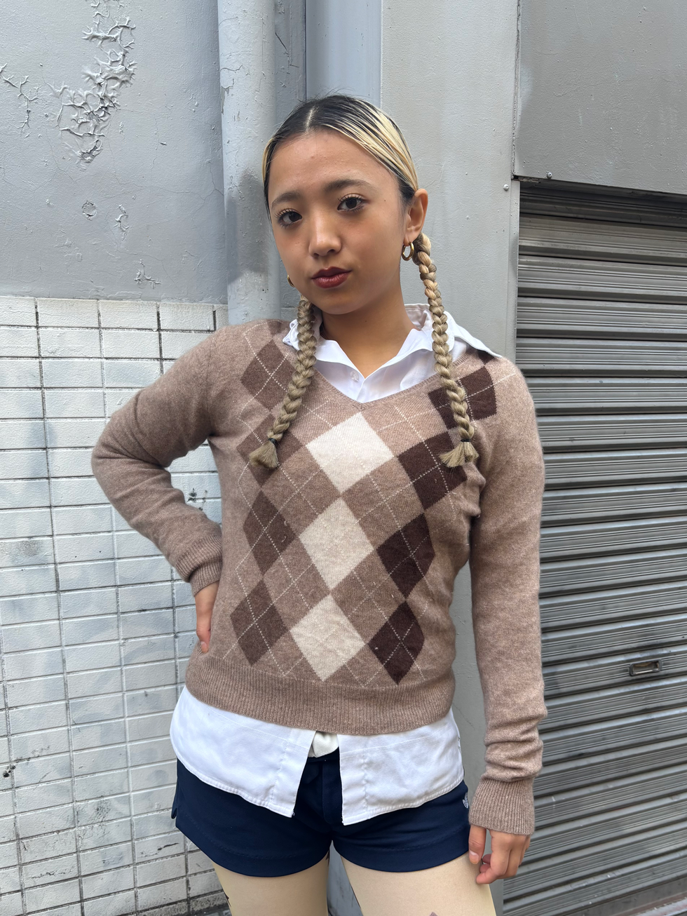 全米で展開するデパート「Kohl's」のオリジナルブランド APT.9 のアーガイル柄セーター。今季トレンドのアーガイル柄はPINNAPイチ押しアイテム!どこか懐かしさを感じるデザインでプレッピーガールコーデにおすすめ。また、生地は100%カシミアで着心地がとても良いです。
