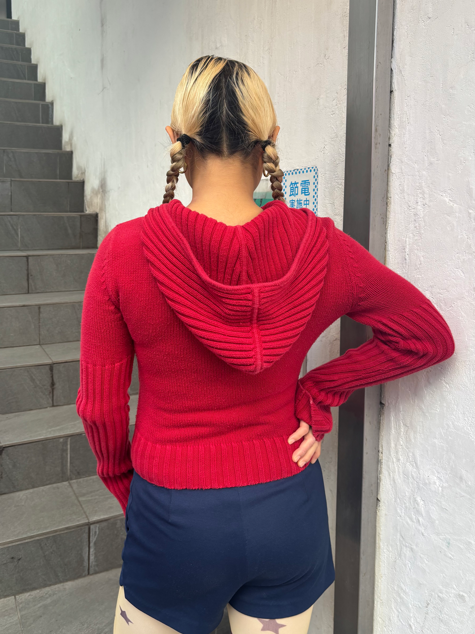 DKNY Jeans-Zip Up Sweater-Cherry Red