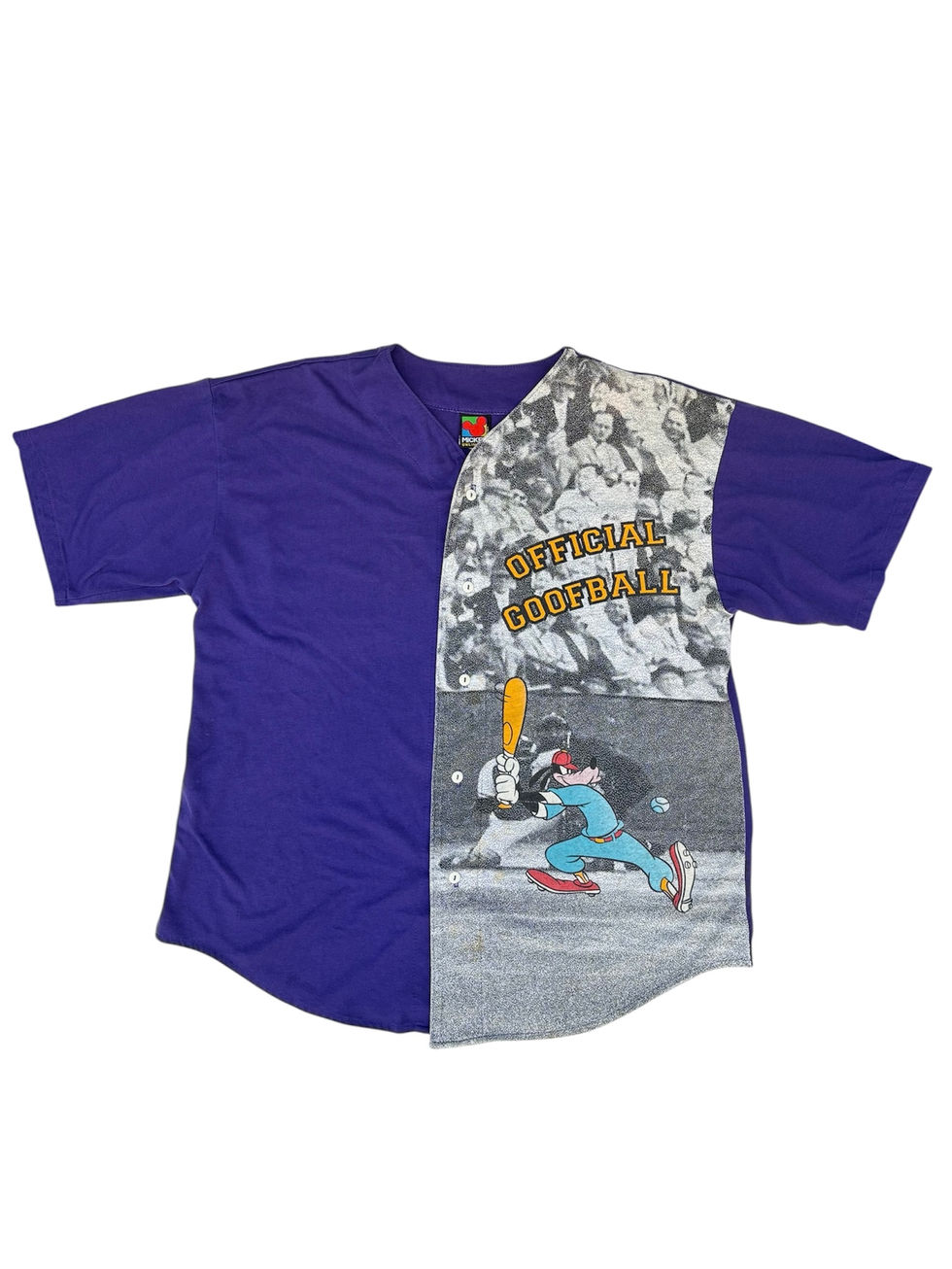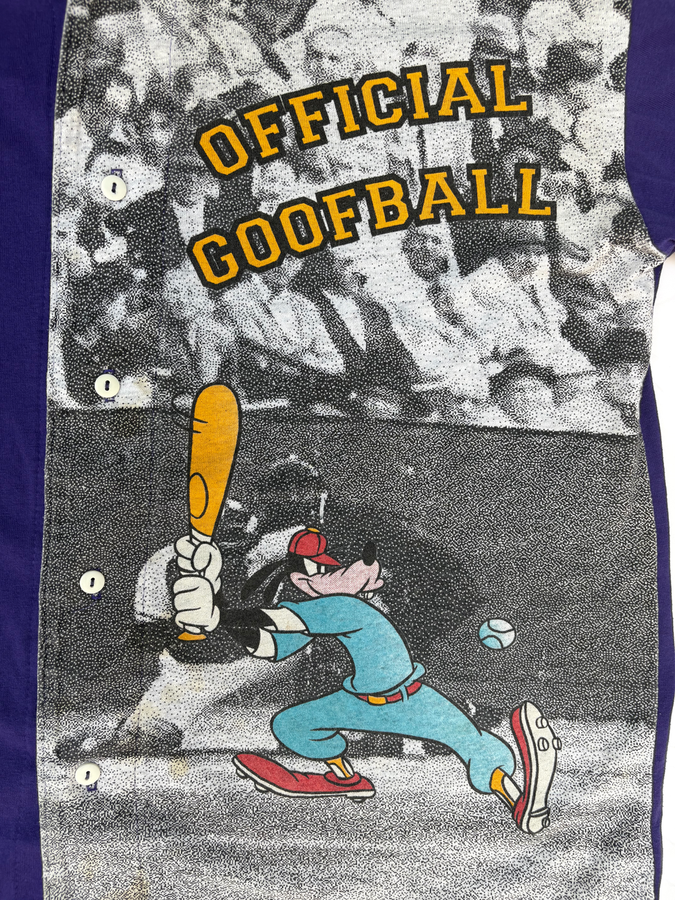 グーフィーをモチーフにしたベースボールシャツで、"OFFICIAL GOOFBALL(おちゃめ、お調子者)"と書かかれたユーモアのある表現で、グーフィーというキャラクターにぴったりの遊び心あるアイテムです。