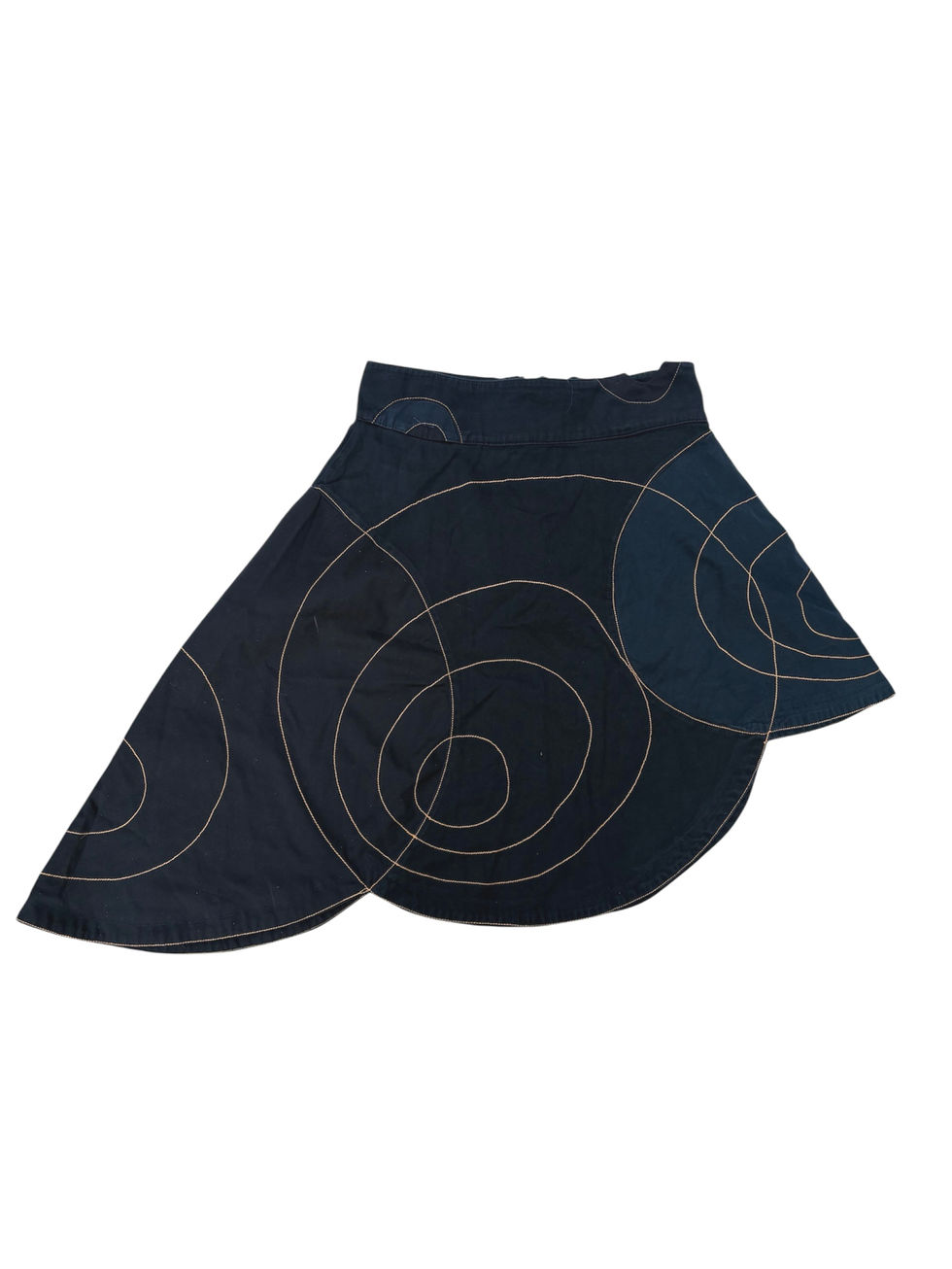 左右で裾の長さが違い、丸の形に縁取られた形が可愛らしいスカート。