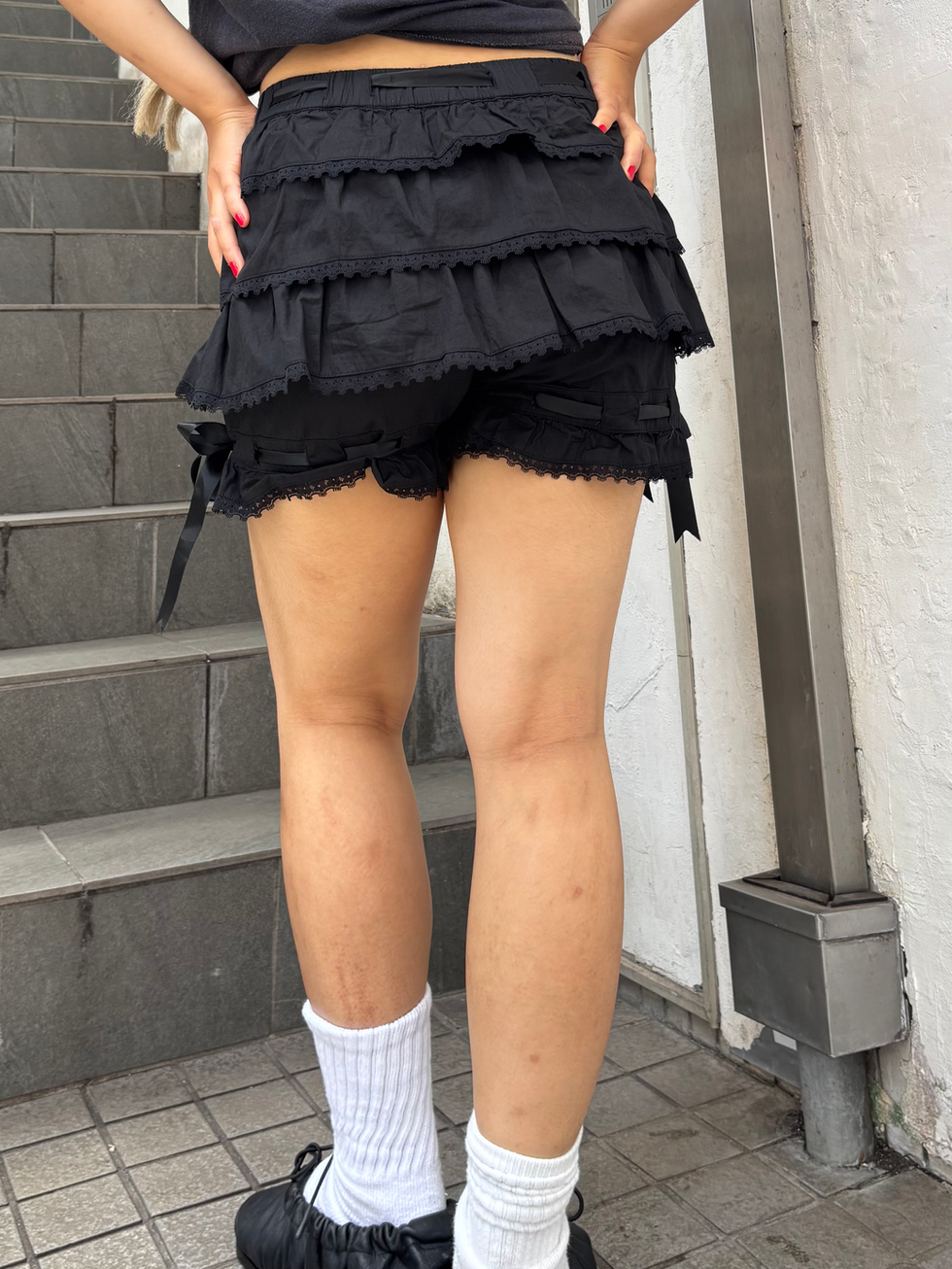 LAを拠点とするスモールビジネス"Tunnel Vision"のフリルショートパンツ。ウェストと裾にはリボンでサイズ調節が可能。