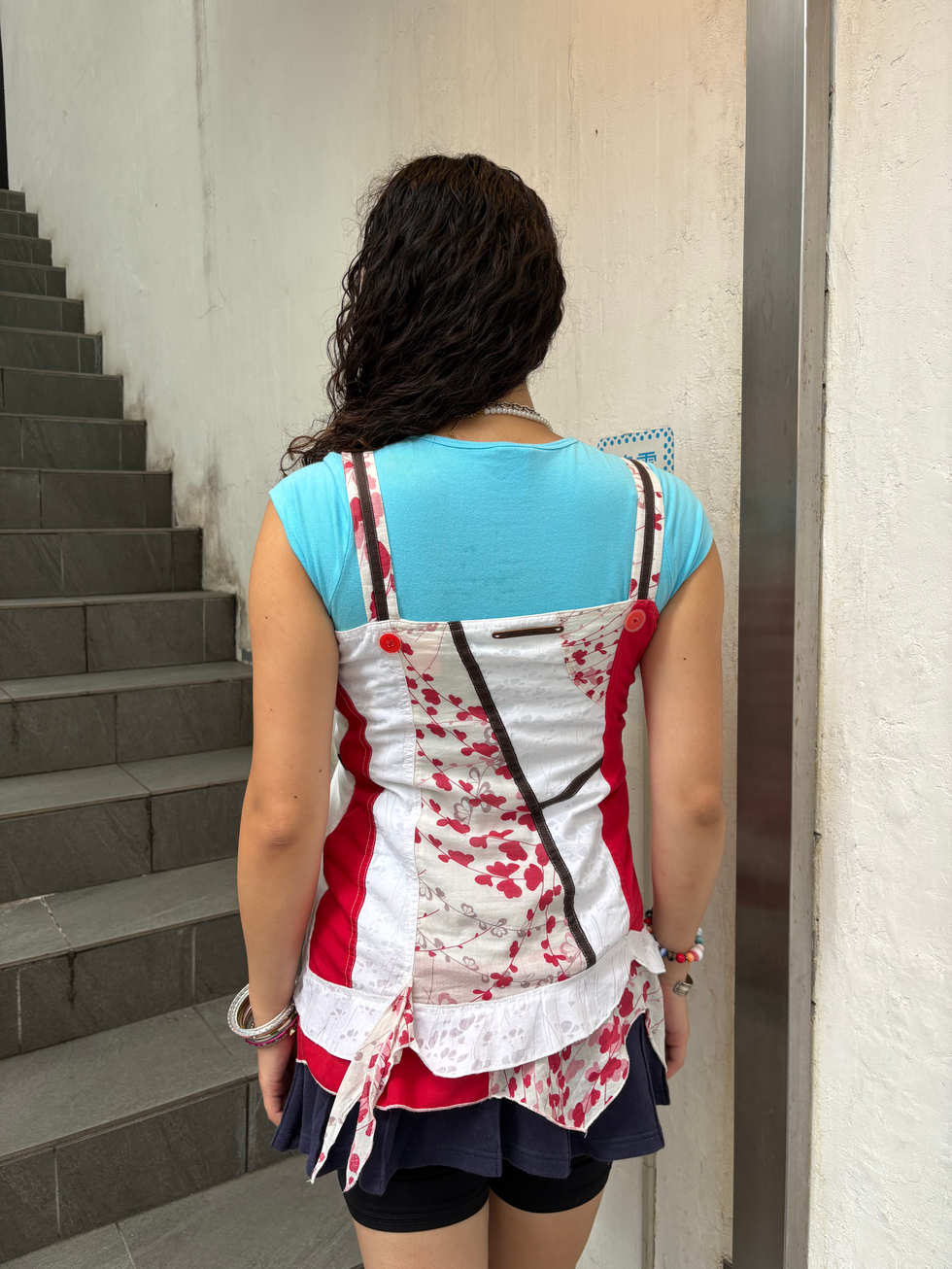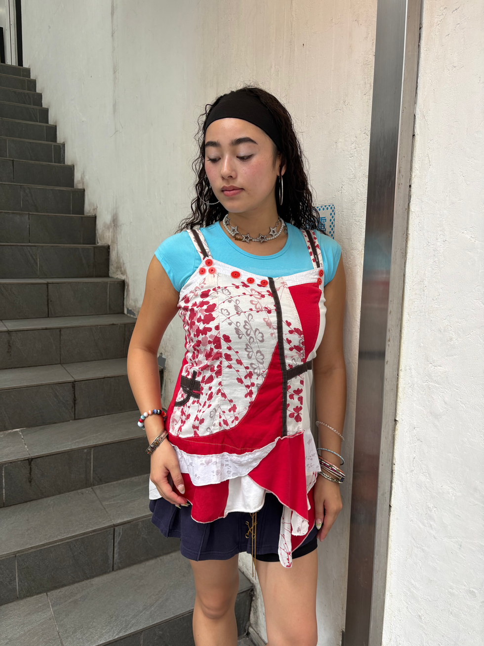 ビンテージライクなパッチワークと繊細なレースディテールが印象的なトップス。個性的なデザインながら着回しやすく、デニムやカーゴパンツでカジュアルに、スカートでガーリーに仕上げるのもおすすめ。世界に一つだけのような存在感でコーデを彩ります。