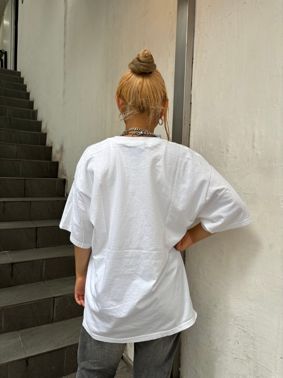 白地なので様々なボトムスとも合わせやすく、夏はミニスカートやホットパンツと合わせて涼しげなコーデも◎
