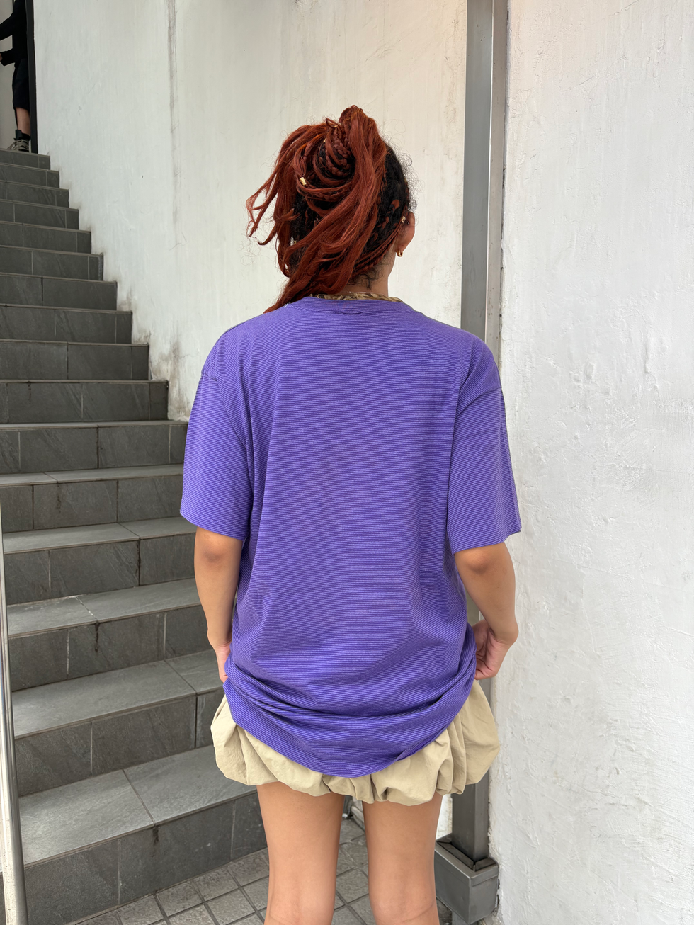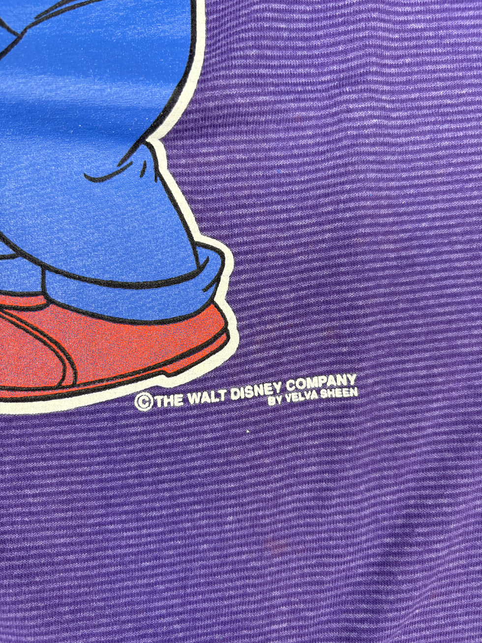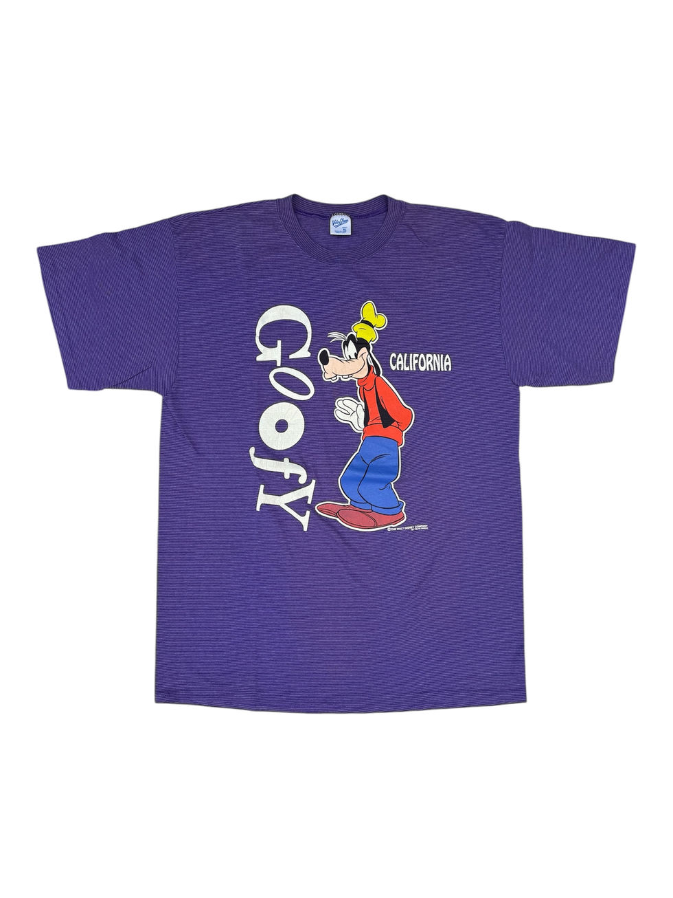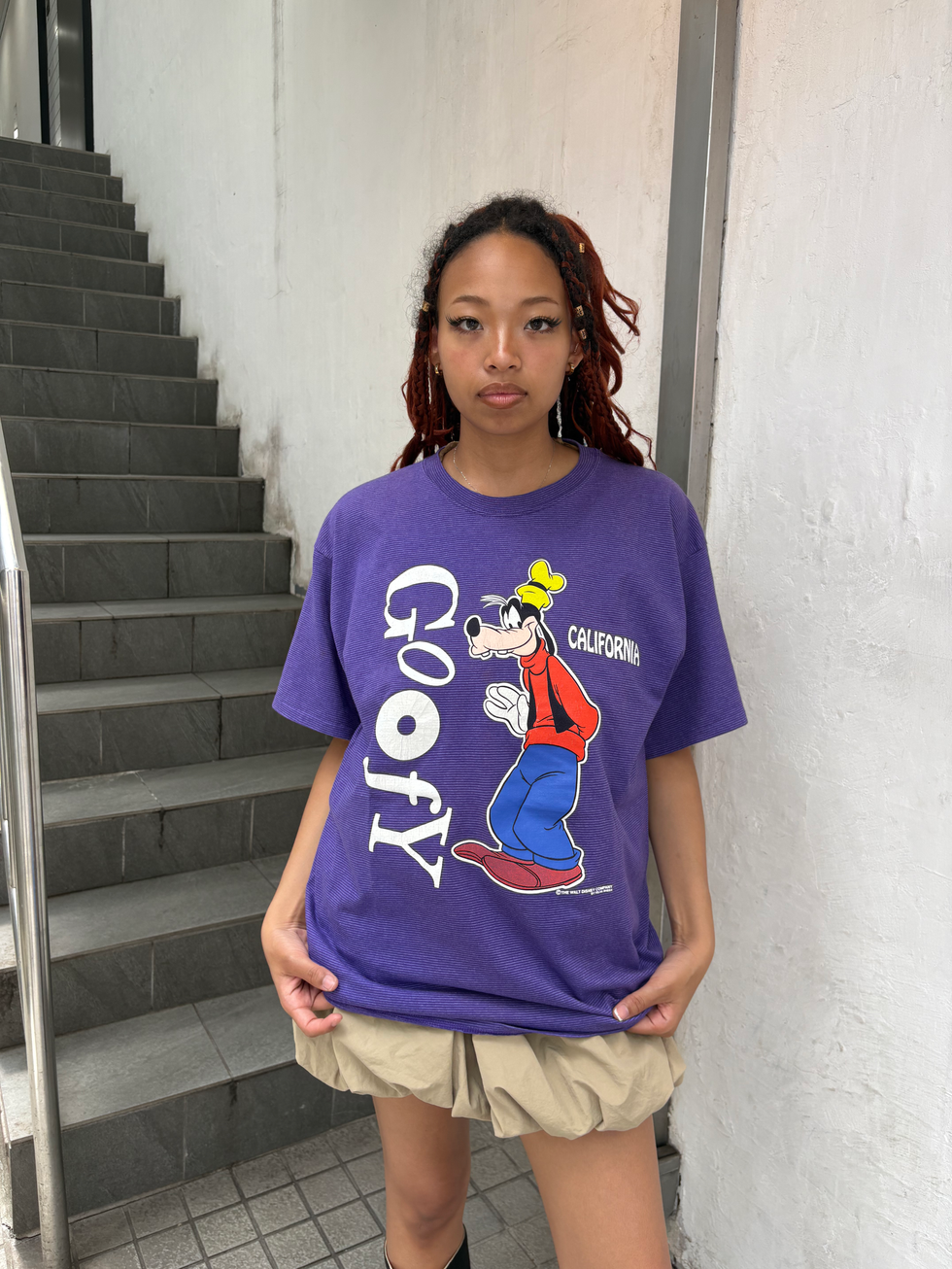 90年代〜2000年代初頭にかけて流通していた、ディズニー公式のキャラクターTシャツ。ポップなパープルに、クラシックなグーフィーの立ち姿と「CALIFORNIA」の文字がプリントされた、アメリカンな雰囲気たっぷりの一枚。縦に配置された“Goofy”ロゴもユニークで、ストリートコーデのアクセントにぴったり。程よくゆとりのあるサイズ感です。、