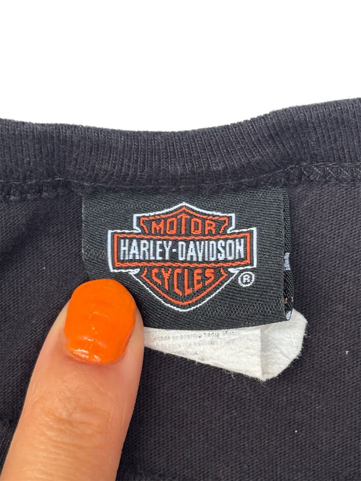 大人気のアメリカ発オートバイメーカーHarley Davidson のY2K ショートスリーブトップス。両サイドにスリットが入っており、タンクトップなどとレイヤードにもおすすめ。シンプルでありながらもエッジが効いたデザインがとても可愛く人と被らないアイテムをお探しの方におすすめ!