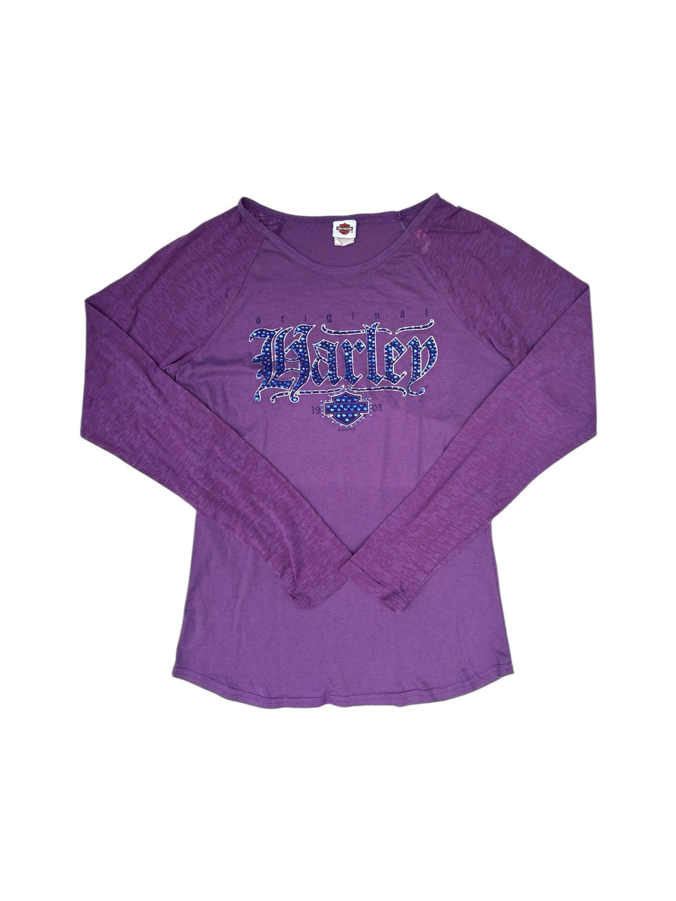 大人気のアメリカ発オートバイメーカーHarley Davidson のシアーロングスリーブ。少しゆったりとしたサイズ感でTシャツなどとのレイヤードもおすすめ。