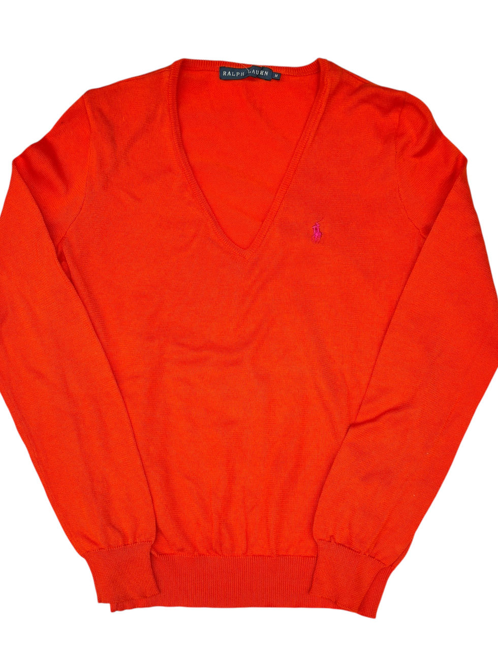 RALPH LAUREN - Vneck Cotton Knit Sweater - Orange