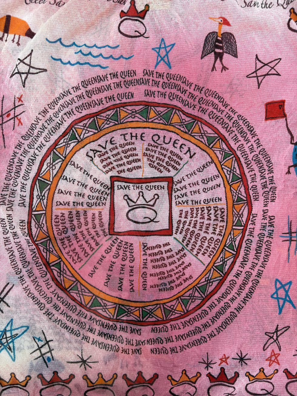 SAVE THE QUEENの代表的なロゴがプリントされたシアートップス。オフショルダーデザインで、ガーリーに着こなせます。