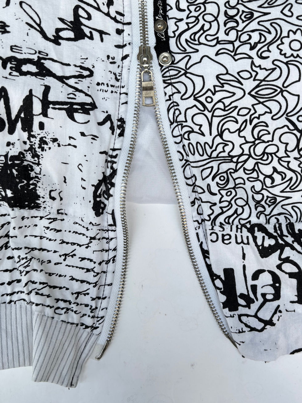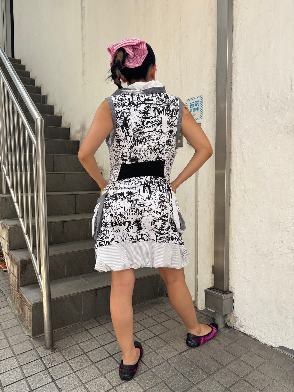 ダブルジップで羽織りにもできるドレス。腰部分にポケットが2つ付いているため、実用性も兼ね備えています。チェックと英字のプリントが全面的にデザインされている個性的な一枚。裾部分はバルーンになっていて流行もキャッチできる特別な一枚です。
