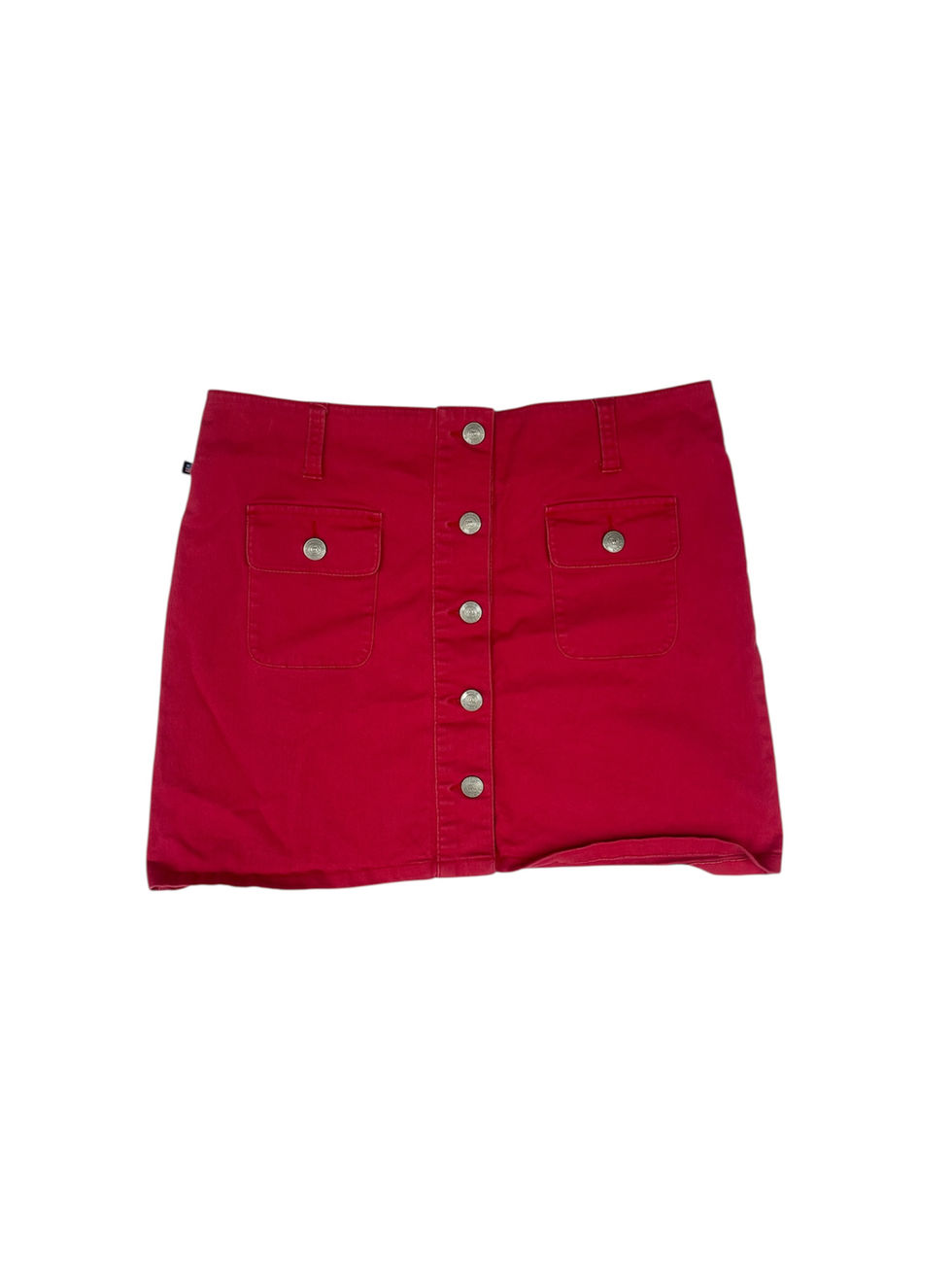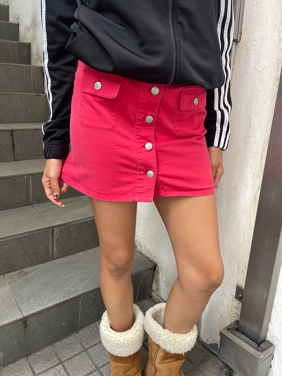 深みのあるピンクカラーが印象的なボタンフロントのデニムスカート。