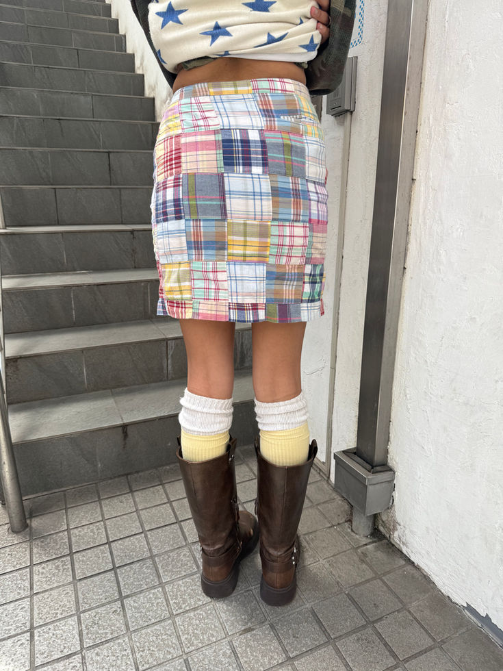 RALPH LAUREN SPORTらしい上品なマドラスチェックを組み合わせたパッチワークスカート。クラシックな柄ながらも遊び心のあるデザインで、カジュアルにも綺麗めにも振れる万能アイテム。シャツ合わせでラルフらしく着るのも◎