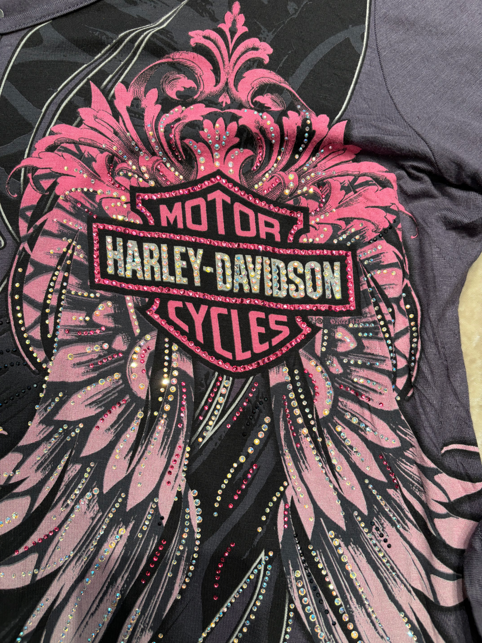 Harley Davidson - Y2K Long Sleeve Mini Dress - Grey/Pink