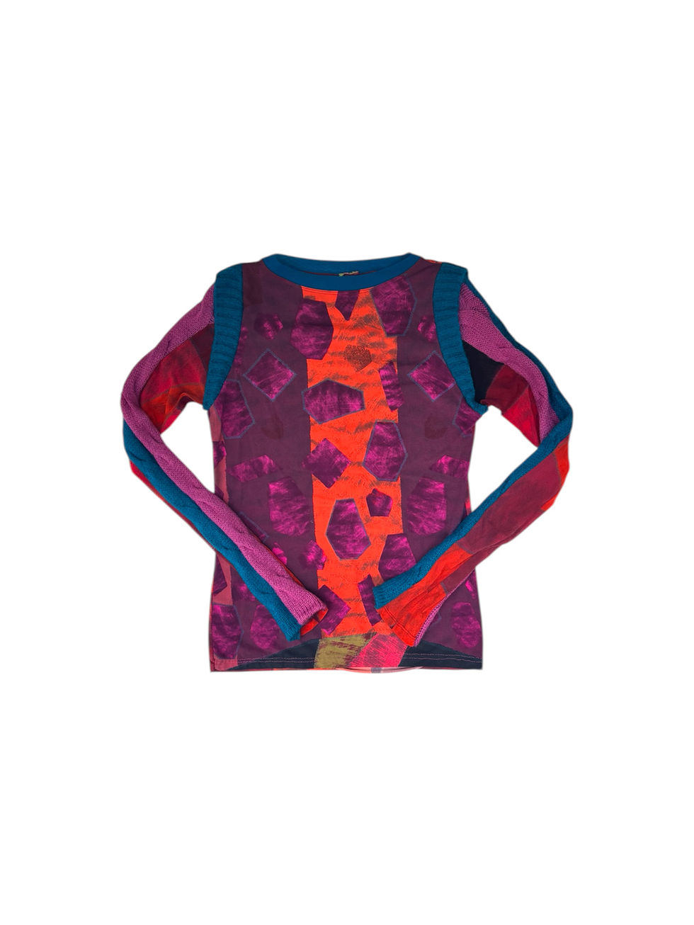 異なるパターンやカラーを大胆に組み合わせたパッチワークが、唯一無二の存在感を放ちます。エスニック調の織り柄やグラフィックがミックスされ、コーデに取り入れるだけで一気に主役級の一着に。