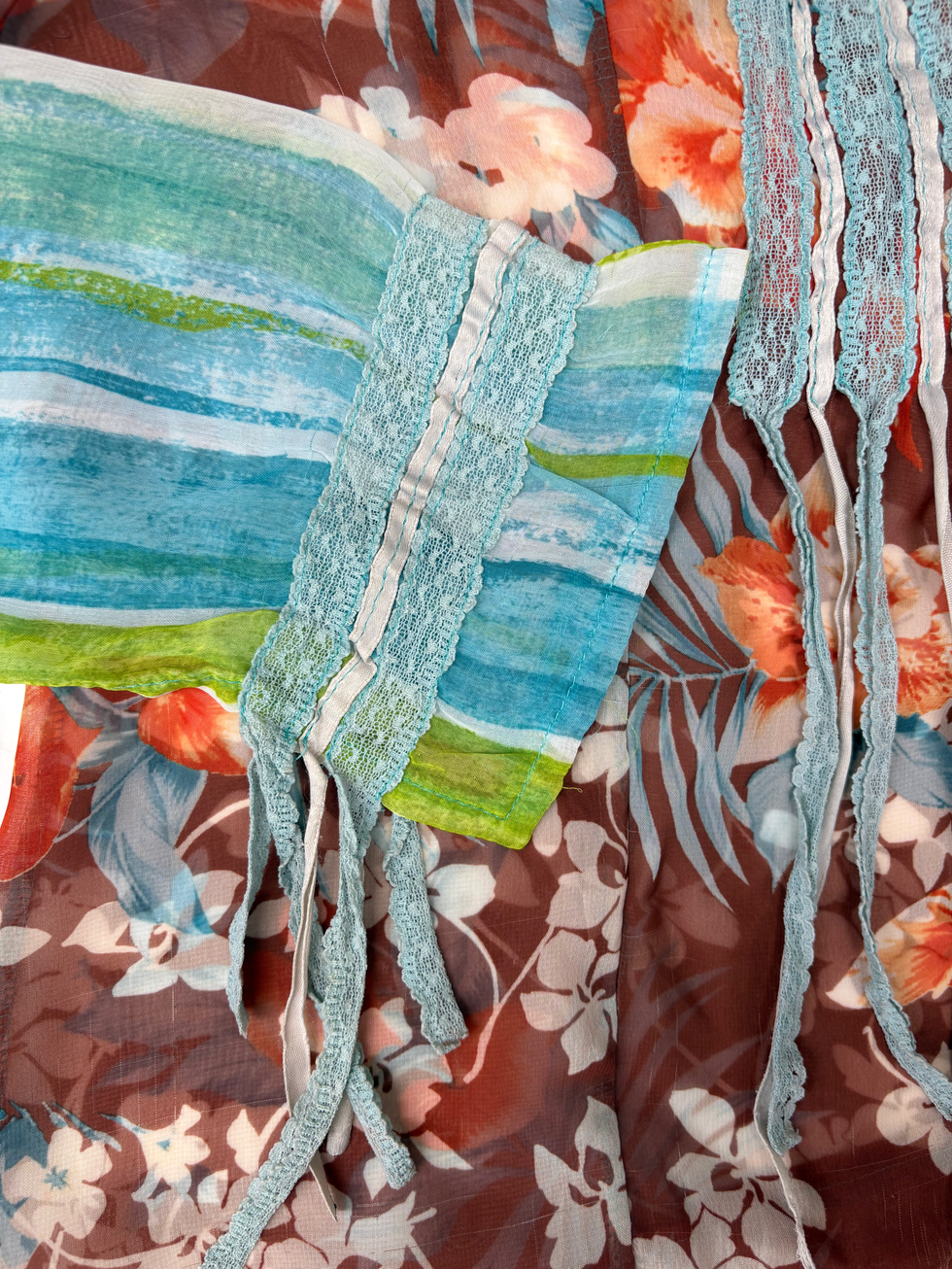 花柄とストライププリントがインパクトのあるシアーブラウス。