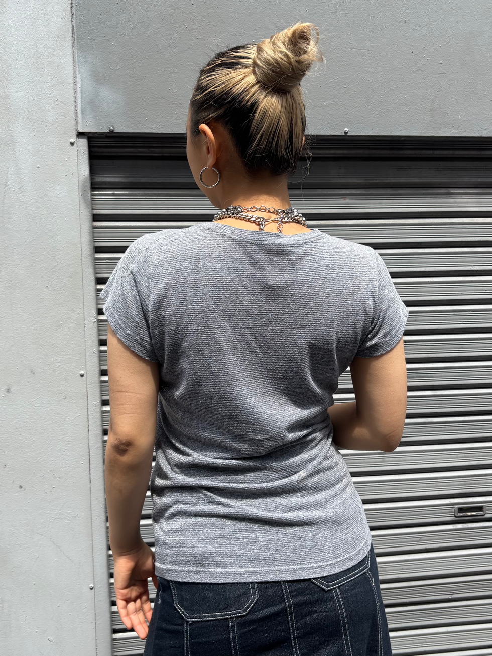 2000年代に人気のラメ素材が特徴的でミニスカートやローライズデニムとの相性抜群で幅広く活躍するアイテムです。